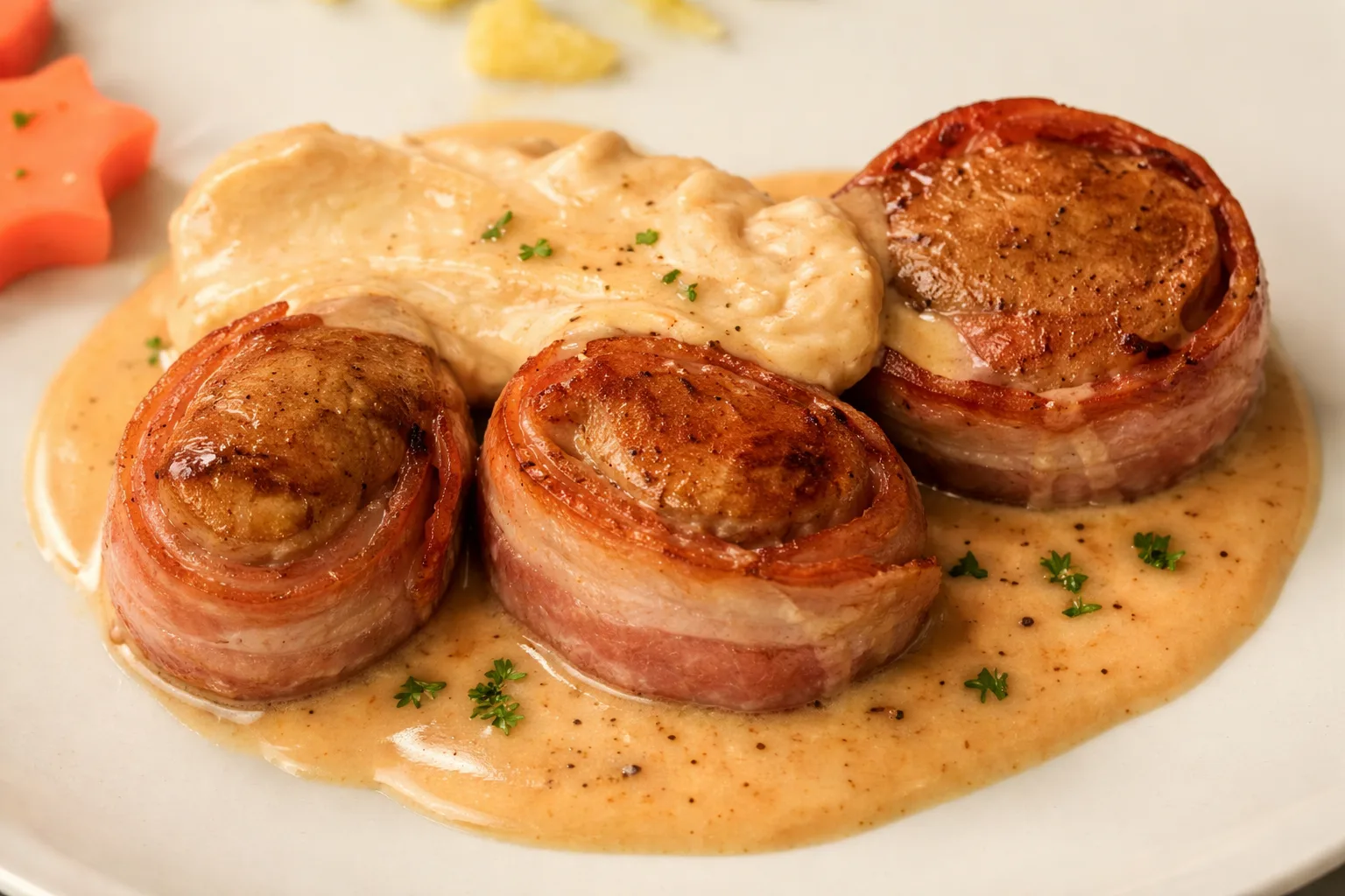 Party-Filet an Cognacsauce (oft auch „Filet im Speck mit Cognac-Rahmsauce“)...