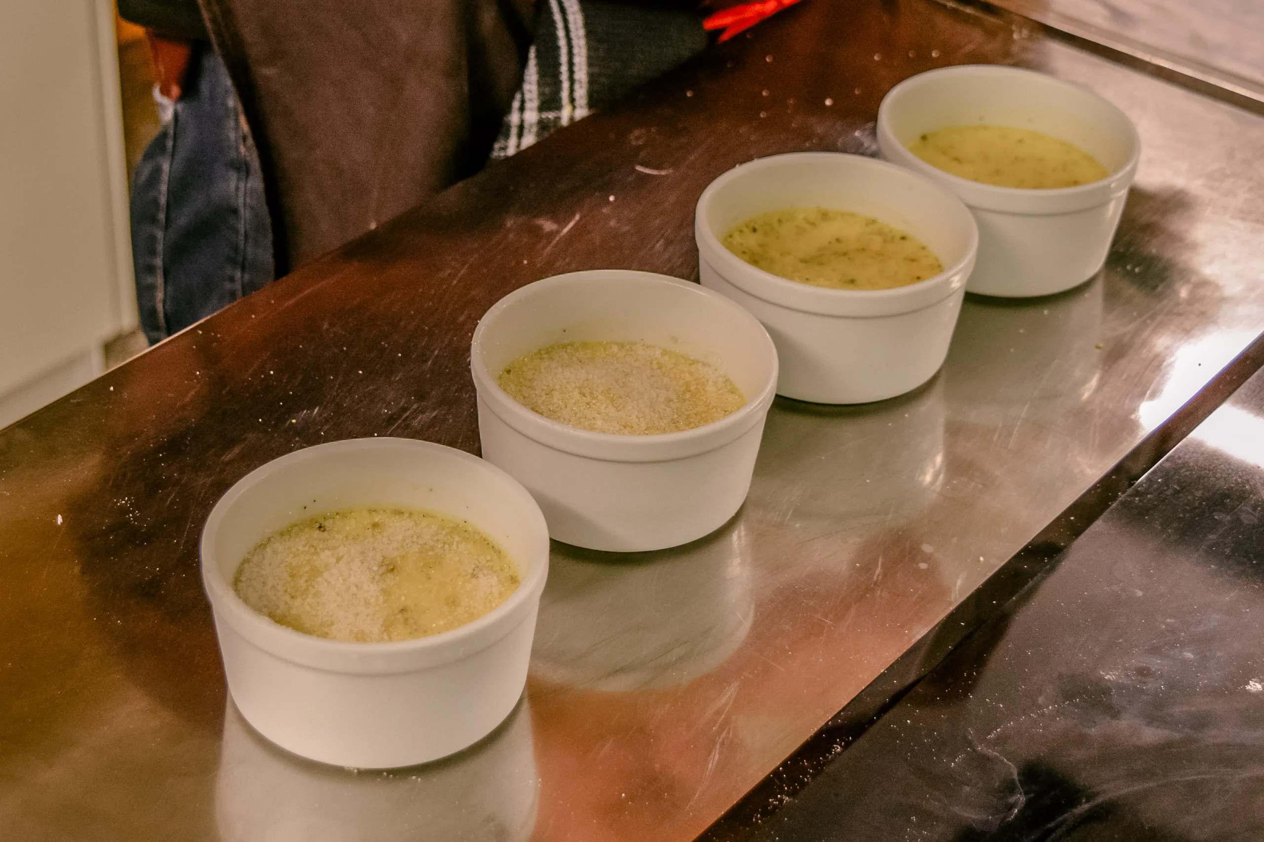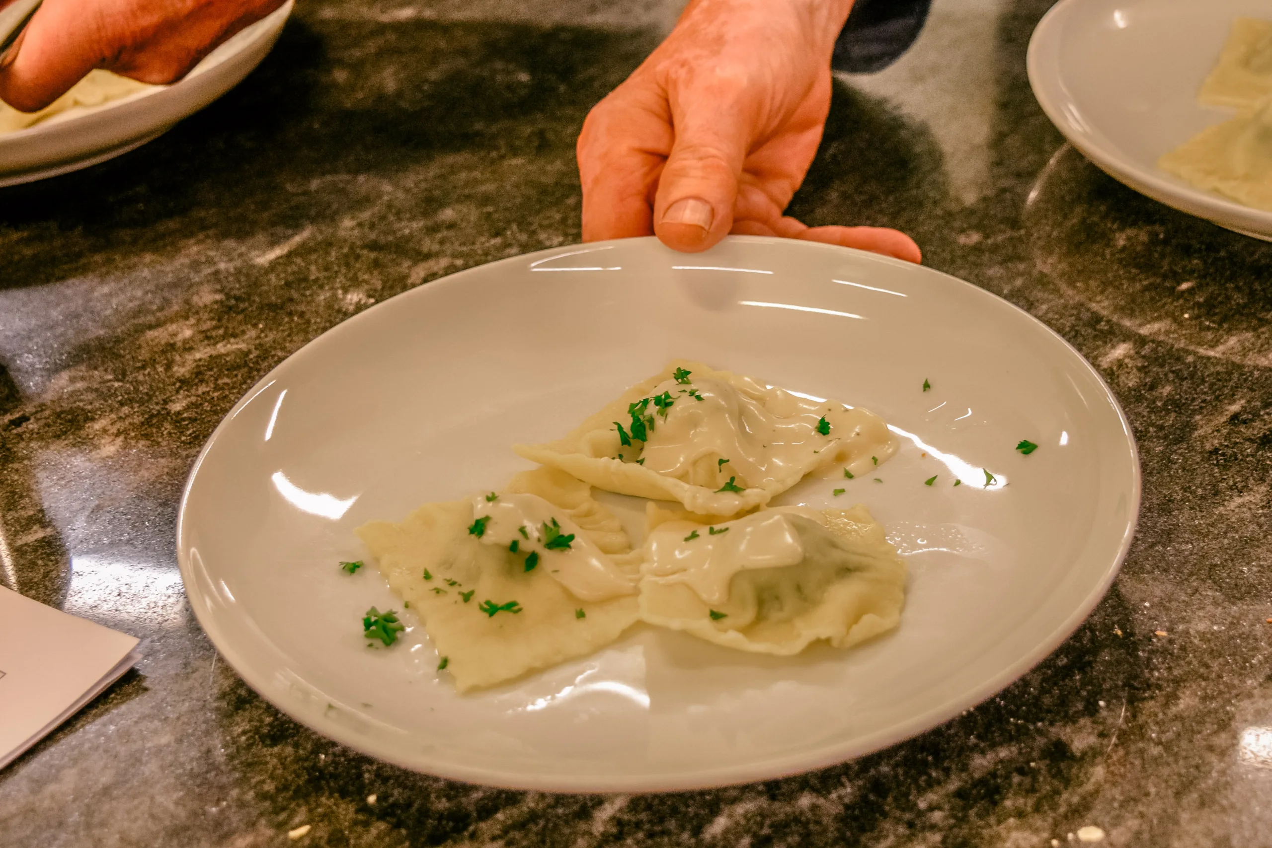 Als die Ravioli schliesslich fertig waren, wanderten sie erst einmal zur Seite – ihre grosse Stunde war noch nicht gekommen. Zunächst stand nämlich die Vorspeise auf dem Programm.