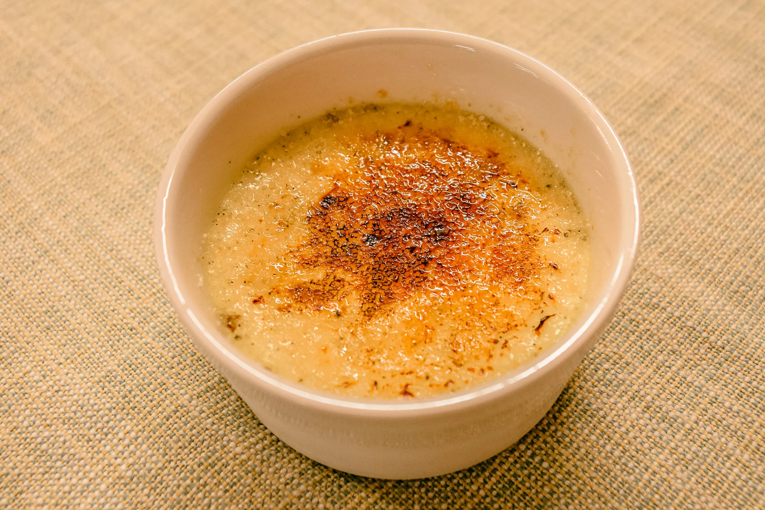 Als Dessert standen die Crème Brûlées mit feinem Limettenabrieb auf dem Programm. Sie waren inzwischen perfekt abgekühlt und warteten nur noch auf ihren grossen Auftritt: die Karamellkruste. Dieses Ehrenamt liess sich unser Vizepräsi selbstverständlich nicht entgehen. Mit dem Bunsenbrenner in der Hand – und einem Strahlen im Gesicht, das mindestens genauso heiss war – verwandelte er den braunen Zucker im Nu in eine knusprige, goldene Haube.
